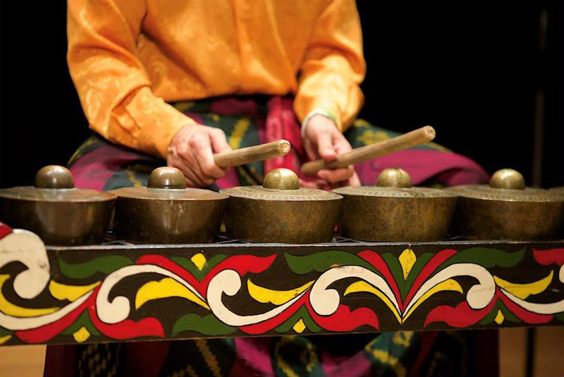 A row of 5 to 11 graduated brass gongs played with mallets, forming the centerpiece of Mindanao's most iconic musical tradition. Preserved for over 1,700 years, the kulintang predates Islamic and Western influences in the Philippines.