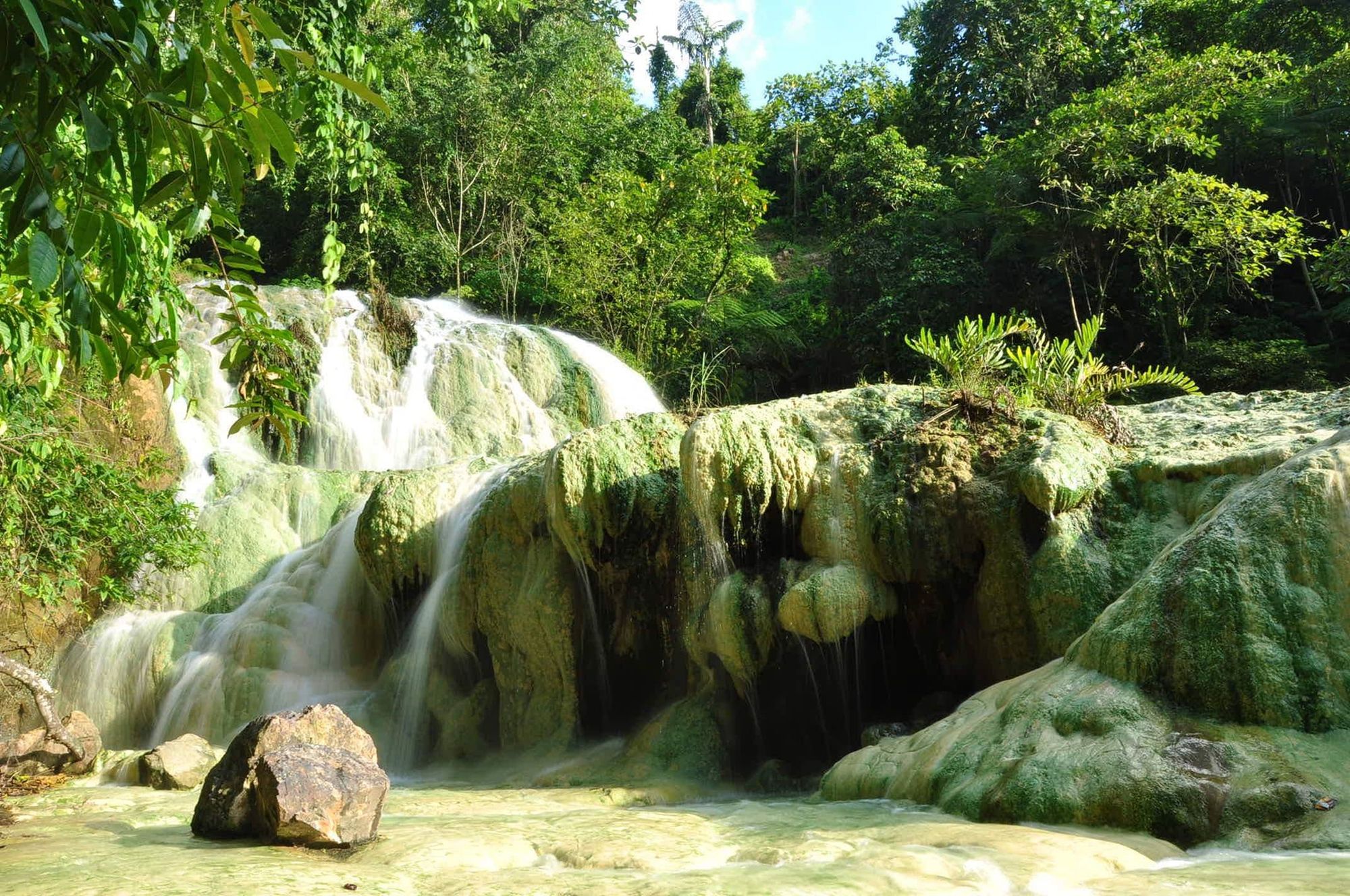 The province's most iconic attraction: a magnificent 3-4 tiered waterfall with an 80-foot (24m) main cascade and natural swimming pools. Requires skylab chartered transport and advance booking for best experience.
